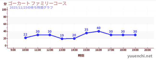 2025/11/25の待ち時間グラフ (ゴーカート ファミリーコース)