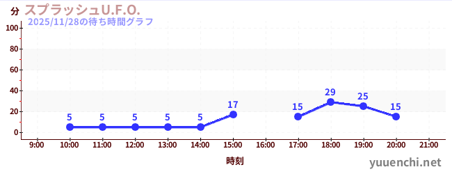 2025/11/28の待ち時間グラフ (スプラッシュU.F.O.)