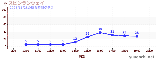2025/11/28の待ち時間グラフ (スピンランウェイ)