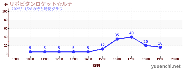 2025/11/28の待ち時間グラフ (リポビタンロケット☆ルナ)