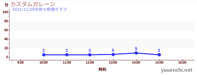 2025/11/28の待ち時間グラフ (カスタムガレージ)