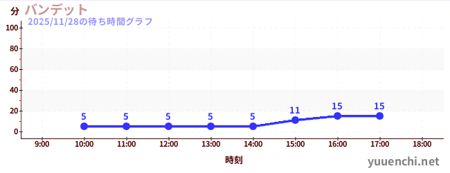 2025/11/28の待ち時間グラフ (バンジージャンプ)