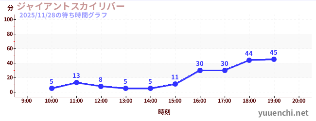 2025/11/28の待ち時間グラフ (ジャイアントスカイリバー)