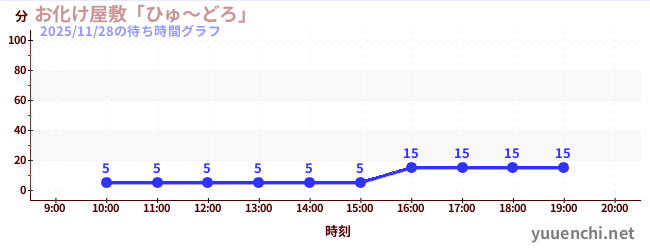 2025/11/28の待ち時間グラフ (お化け屋敷「ひゅ~どろ」)