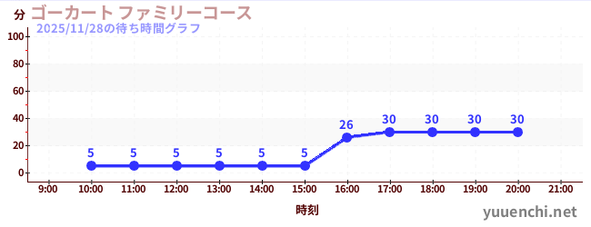 2025/11/28の待ち時間グラフ (ゴーカート ファミリーコース)