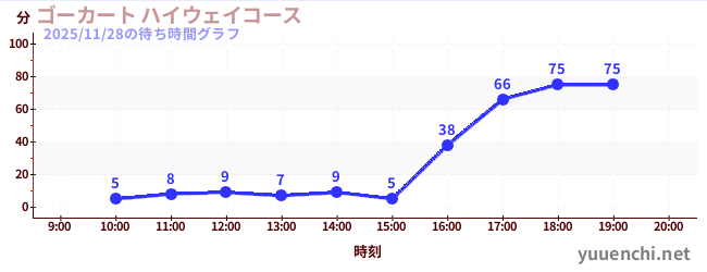 2025/11/28の待ち時間グラフ (ゴーカート ハイウェイコース)