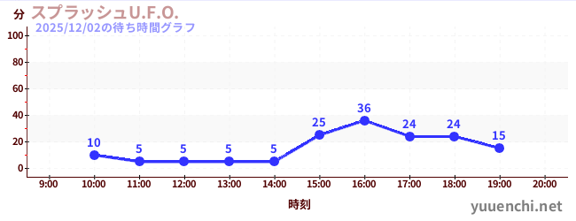 2025/12/02の待ち時間グラフ (スプラッシュU.F.O.)