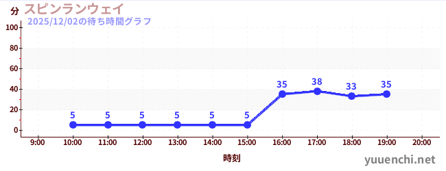 2025/12/02の待ち時間グラフ (スピンランウェイ)