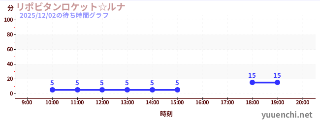 2025/12/02の待ち時間グラフ (リポビタンロケット☆ルナ)
