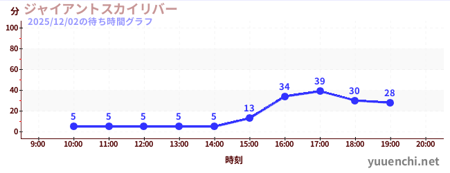 2025/12/02の待ち時間グラフ (ジャイアントスカイリバー)
