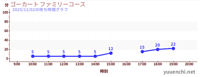 2025/12/02の待ち時間グラフ (ゴーカート ファミリーコース)