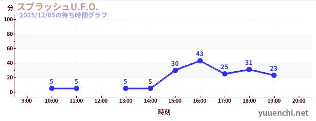 2025/12/05の待ち時間グラフ (スプラッシュU.F.O.)