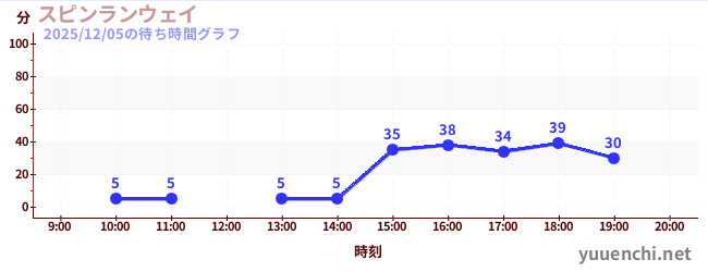 2025/12/05の待ち時間グラフ (スピンランウェイ)