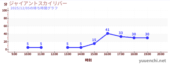 2025/12/05の待ち時間グラフ (ジャイアントスカイリバー)