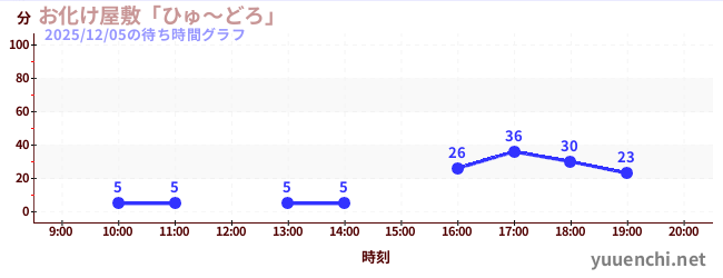 2025/12/05の待ち時間グラフ (お化け屋敷「ひゅ~どろ」)