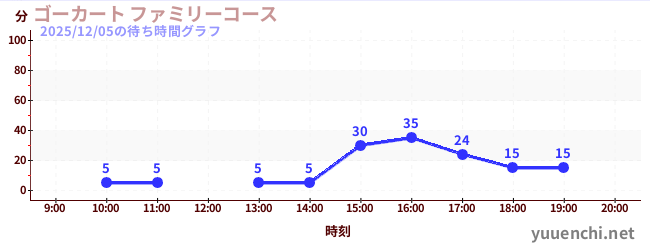 2025/12/05の待ち時間グラフ (ゴーカート ファミリーコース)