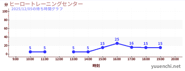 2025/12/05の待ち時間グラフ (ヒーロートレーニングセンター )