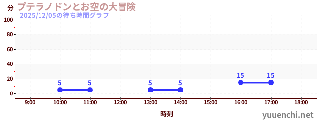 2025/12/05の待ち時間グラフ (プテラノドンとお空の大冒険)