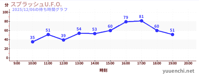 2025/12/06の待ち時間グラフ (スプラッシュU.F.O.)