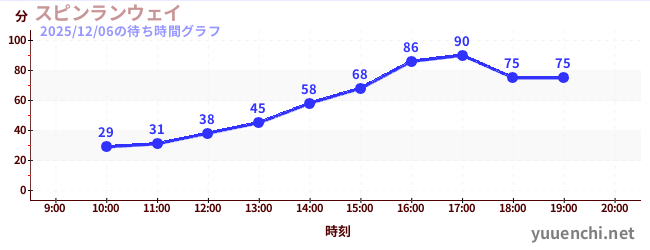 2025/12/06の待ち時間グラフ (スピンランウェイ)