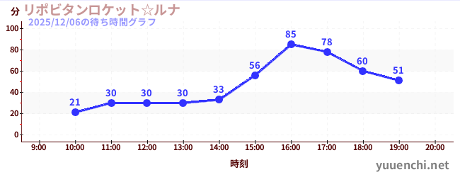 2025/12/06の待ち時間グラフ (リポビタンロケット☆ルナ)