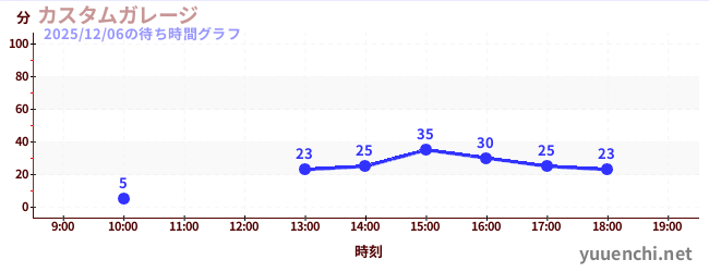 2025/12/06の待ち時間グラフ (カスタムガレージ)