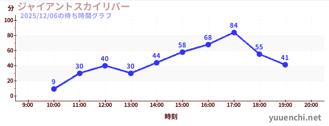 2025/12/06の待ち時間グラフ (ジャイアントスカイリバー)
