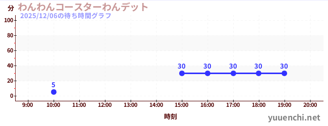 2025/12/06の待ち時間グラフ (わんわんコースターわんデット)