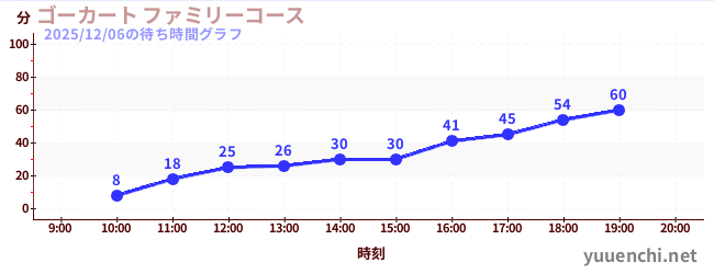2025/12/06の待ち時間グラフ (ゴーカート ファミリーコース)