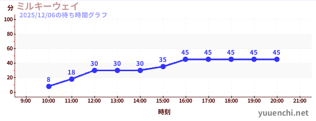 2025/12/06の待ち時間グラフ (ミルキーウェイ ペアシート)