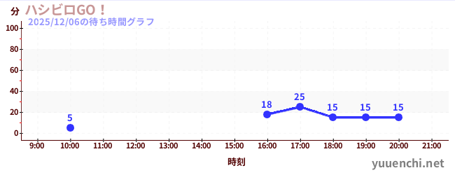 2025/12/06の待ち時間グラフ (ハシビロGO!)