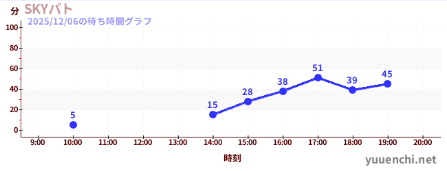 2025/12/06の待ち時間グラフ (SKYパト)