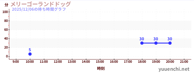 2025/12/06の待ち時間グラフ (メリーゴーランドドッグ)