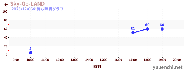 2025/12/06の待ち時間グラフ (Sky-Go-LAND)