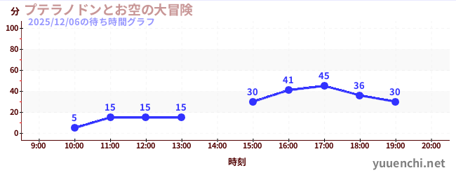 2025/12/06の待ち時間グラフ (プテラノドンとお空の大冒険)