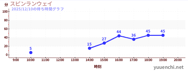2025/12/10の待ち時間グラフ (スピンランウェイ)