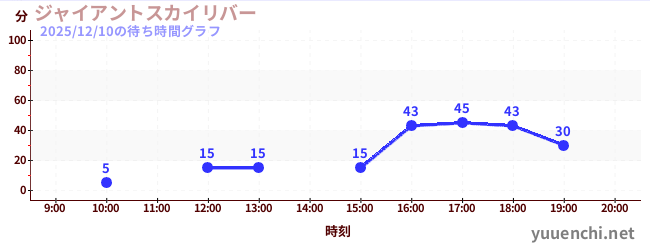 2025/12/10の待ち時間グラフ (ジャイアントスカイリバー)