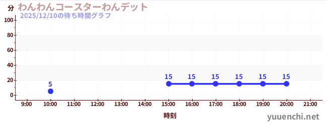2025/12/10の待ち時間グラフ (わんわんコースターわんデット)