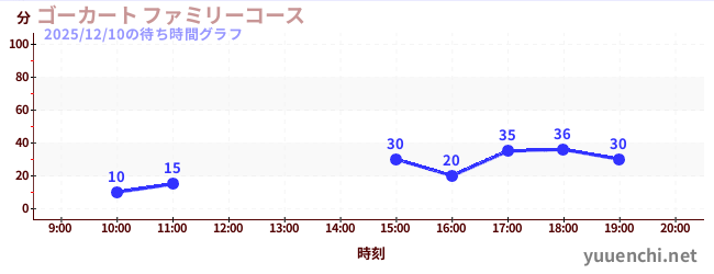 2025/12/10の待ち時間グラフ (ゴーカート ファミリーコース)