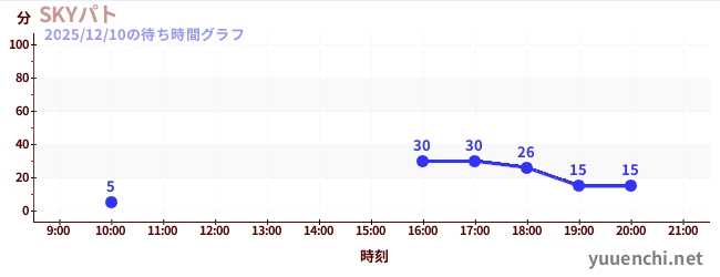 2025/12/10の待ち時間グラフ (SKYパト)