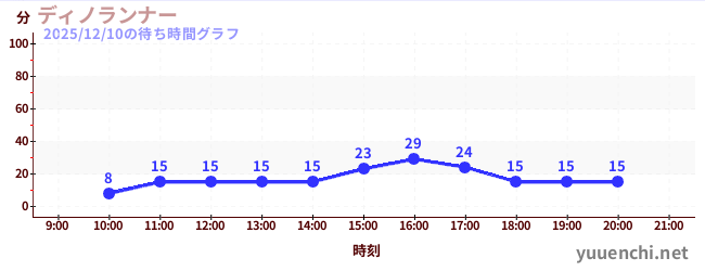 2025/12/10の待ち時間グラフ (ディノランナー)