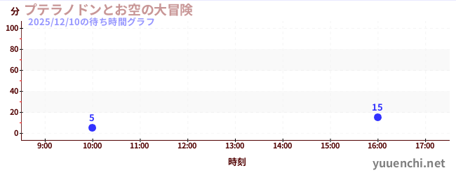 2025/12/10の待ち時間グラフ (プテラノドンとお空の大冒険)