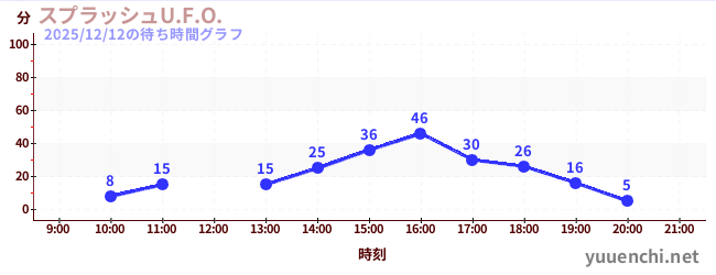 2025/12/12の待ち時間グラフ (スプラッシュU.F.O.)