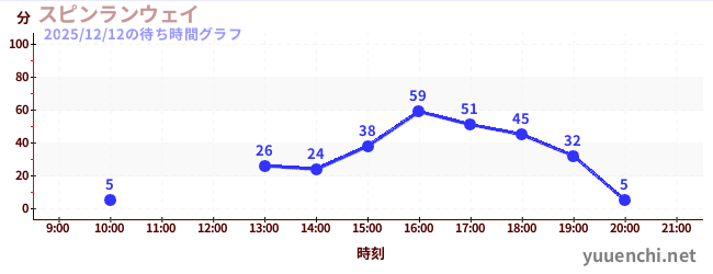 2025/12/12の待ち時間グラフ (スピンランウェイ)