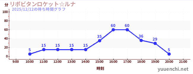 2025/12/12の待ち時間グラフ (リポビタンロケット☆ルナ)