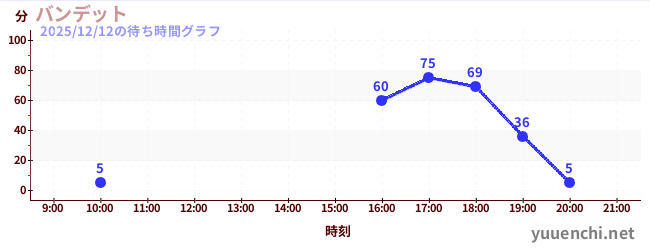 2025/12/12の待ち時間グラフ (スプラッシュバンデット)