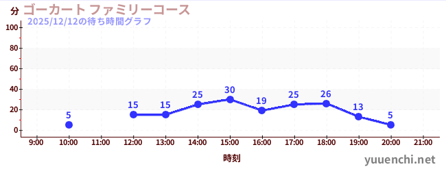 2025/12/12の待ち時間グラフ (ゴーカート ファミリーコース)