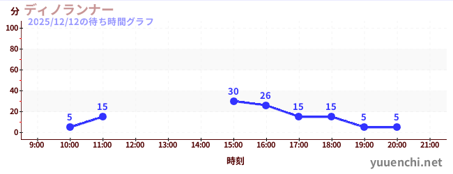 2025/12/12の待ち時間グラフ (ディノランナー)