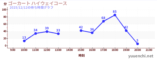2025/12/12の待ち時間グラフ (ドライビングラボ)