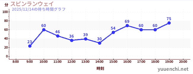 2025/12/14の待ち時間グラフ (スピンランウェイ)